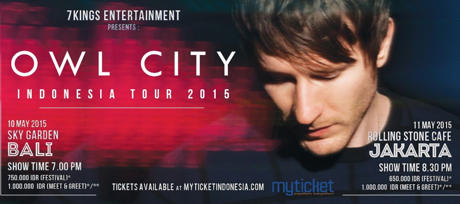 Owl City Indonesian Tour 2015 ini pun diselenggarakan di dua kota besar Indonesia yaitu:- Bali, SKY GARDENG LEGIAN: 10 Mei 2015, pukul 19:00