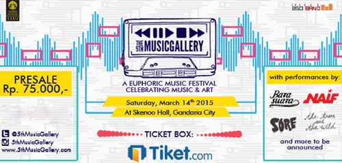 5th Music Gallery kembali diselenggarakan pada 14 Maret 2015, bertempatan di Skenoo Hall, Gandaria City. Music Gallery adalah salah satu festival Independent Music terbesar di Indonesia, yang sudah menginjak tahun ke-5nya di tahun 2015 dan tahun ini, merupakan puncak pagelaran.
